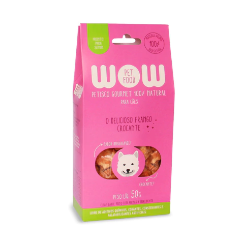 O Petisco Natural Gourmet Frango Crocante da WOW Pet Food para cães é uma ótima opção para quem busca agrados saborosos e com qualidade. Ele é produzido apenas com filé de peito de frango desidratado, sem uso de aditivos químicos, garantindo um petisco 100 % natural. Com matéria-prima brasileira de alto padrão, o produto valoriza ingredientes próprios para consumo humano. A textura crocante oferece um momento de prazer para o cão, mas também pode ser reidratada para facilitar o consumo quando necessário. Versátil, atende cães filhotes, adultos e idosos, sendo ideal como agrado, recompensa em treino ou estímulo em enriquecimento ambiental.