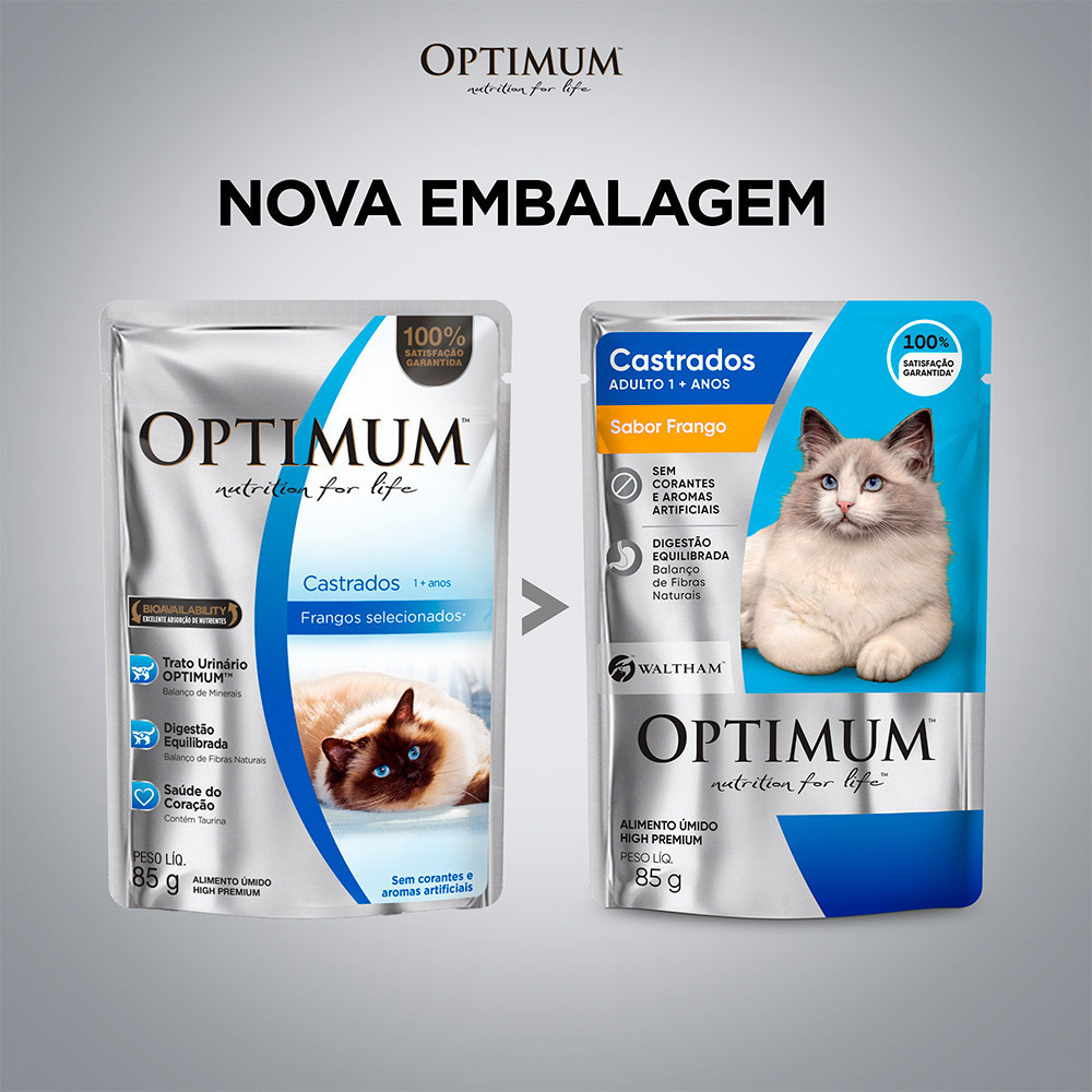 A ração úmida Optimum é completa pois possui todos os nutrientes que o pet precisa. Funcional pois garante parte do consumo de água diário, essencial para a saúde do animal. O que o felino consome em cada etapa de vida tem resultado direto em seu crescimento, força e bem-estar. Por isso Optimum sachê foi desenvolvido usando as melhores matérias-primas, proteínas cuidadosamente selecionadas e nutrientes essenciais. Experimente misturar sachê com alimento seco.