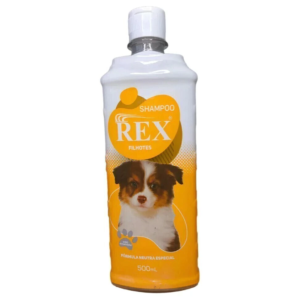 Shampoo Rex Filhotes 500 ml: cuidado delicado e eficaz para a pelagem dos cães jovens. Desenvolvido com fórmula neutra especial, garante limpeza suave sem agredir a pele sensível dos filhotes, promovendo conforto durante o banho. Oferece proteção contra irritações, deixando o pelo macio, brilhante e com fragrância agradável, favorecendo o vínculo entre você e seu pet.