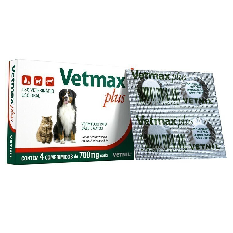 O vermífugo Vetmax Plus 700mg com amplo espectro é indicado no combate ás infestações por nematódeos (vermes redondos) e cestódeos (vermes chatos) gastrintestinais de cães e gatos.
